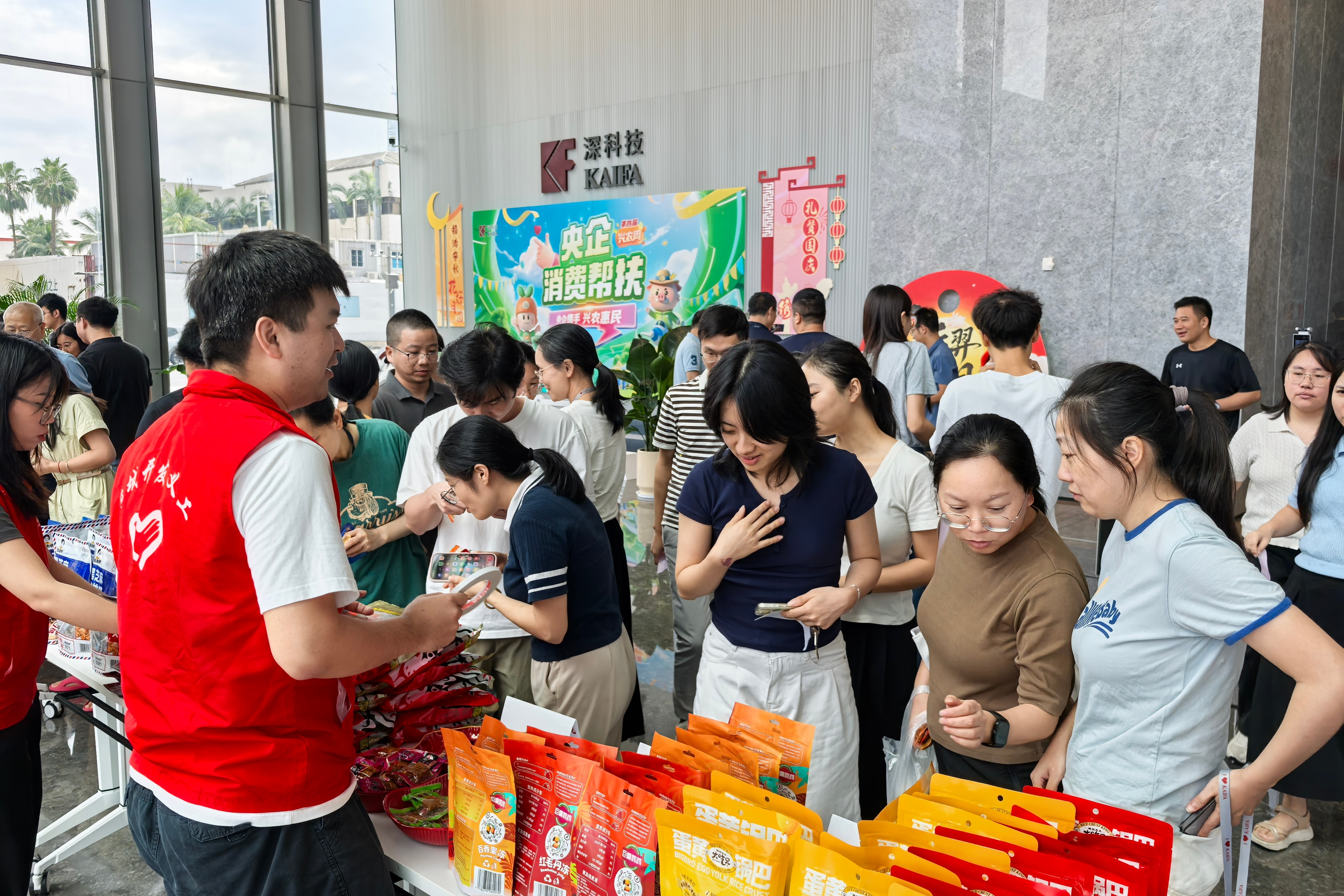 秋分时节,桂香盈袖,恰逢中秋团圆意浓,国庆华章将至。9月23日,在437ccm·必赢国际党委的大力支持下,437ccm·必赢国际工会在437ccm·必赢国际城C座大堂组织开展了第四届“央企消费帮扶兴农周”美食品鉴活动。以美食为纽带,以帮扶为桥梁,本次活动将佳节温情与乡村振兴使命交融,让来自帮扶地区的淳朴风味化作舌尖上的暖流,为乡村振兴注入鲜活能量。