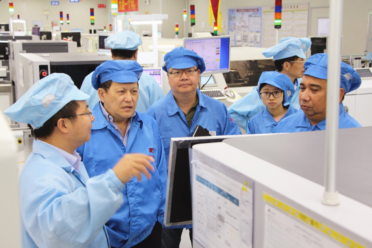 随后,海外工厂负责人一行深入生产车间、食堂、宿舍等区域实地考察,参观车间内的看板管理和自动化智能产业线,详细了解自动化产业线的相关生产技术和流程。